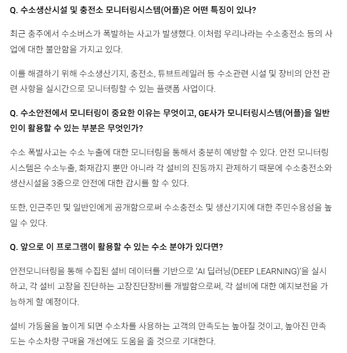 수소충전소 및 생산시설의 안전성을 강화하고, 주민 수용성을 제고, 실시간 모니터링 시스템을 통해 수소설비의 이상 징후를 조기 감지, 일반 주민이 안전 정보를 쉽게 확인할 수 있도록 데이터 공개이며,