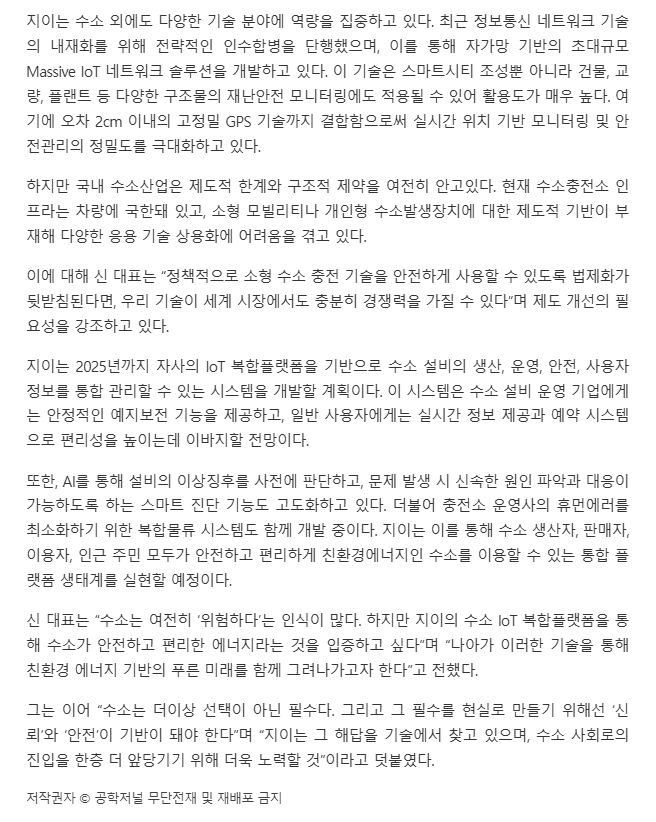 삼척시와의 실증 사업을 비롯해, ICT 융합 기술로 수소 생태계 발전을 선도하고 있는 지이의 혁신 사례를 소개합니다.