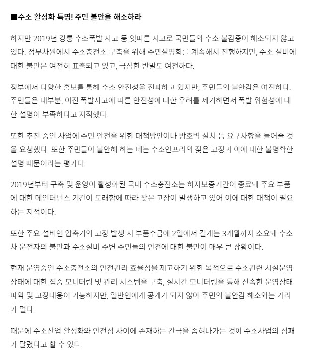 수소충전소 및 생산시설의 안전성을 강화하고, 주민 수용성을 제고, 실시간 모니터링 시스템을 통해 수소설비의 이상 징후를 조기 감지, 일반 주민이 안전 정보를 쉽게 확인할 수 있도록 데이터 공개이며,