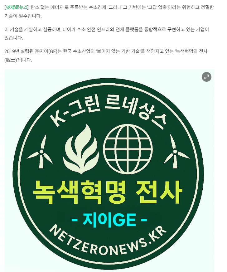 기사 전체 보기 -> ‘K-그린 르네상스'를 꿈꾸는 "녹색혁명의 전사들" #6…'지이GE' < 제품 < C-테크 < 기사본문 - 넷제로뉴스